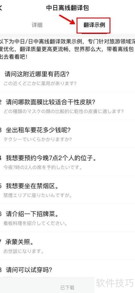 6、 下载时可查看侧边翻译示例,内容涵盖常见语句。