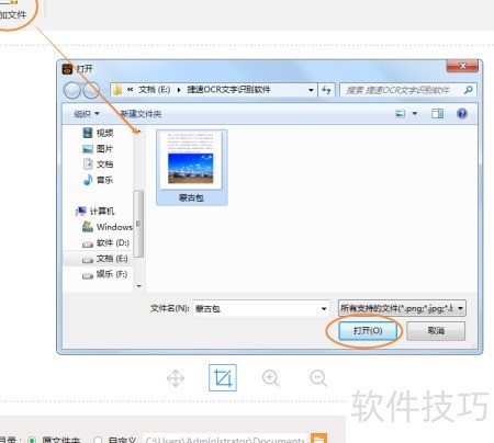 2、 进入图片局部识别页面后,点击左上方添加按钮,导入需识别转换的图片即可。