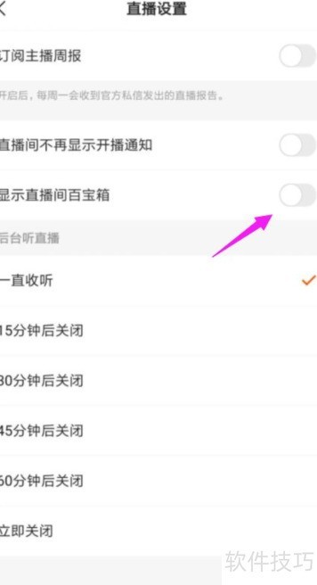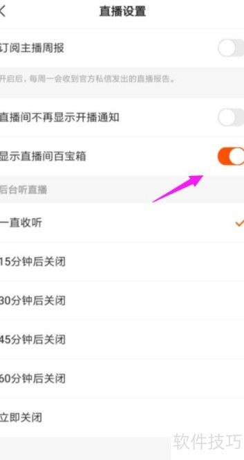 7、 开启显示直播间百宝箱功能,操作所示。