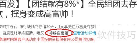 5、 此次8%起保本宣传与以往百度理财B大相径庭,明显更具信心。点开活动详情可见,百宝箱信息更为透明,开启时间也标注得更加清晰明确,整体呈现方式更显诚意与规范。