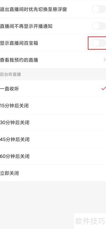 4、 进入直播设置,关闭显示百宝箱的开关即可。