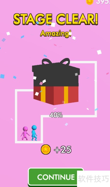 4、 粉色角色成功获救,屏幕上显示STAGE CLEAR通关动画,所示,顺利通过关卡。