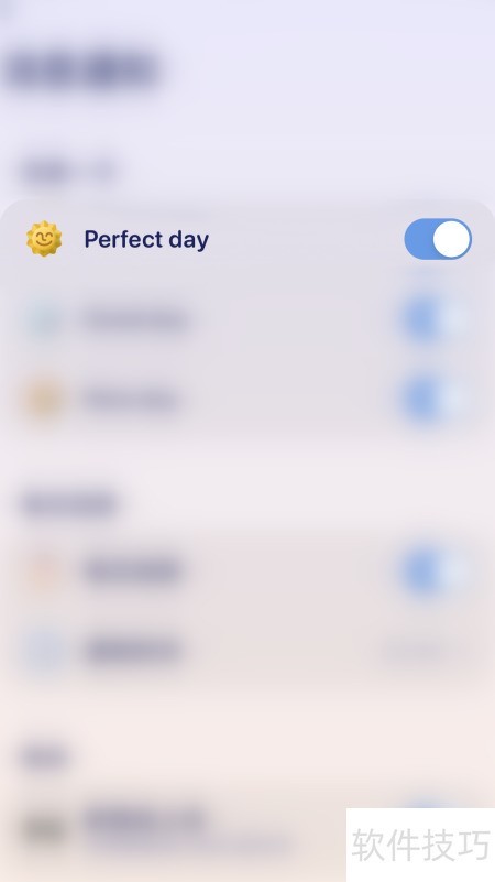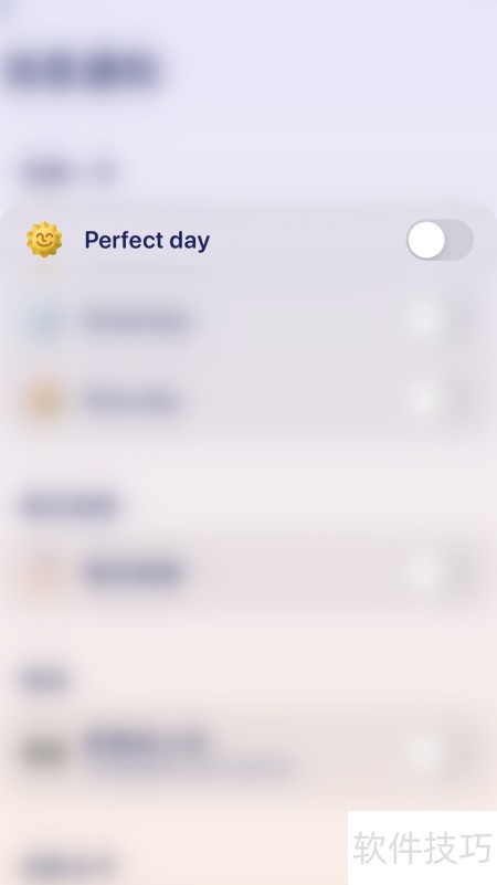 3、 在消息通知设置中,点击Perfect day选项旁的圆点进行操作。