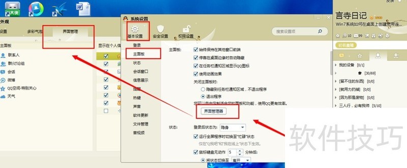 1、 登录QQ账号后,方可开启界面管理器功能。
