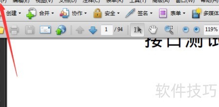 5、 接着在Acrobat Pro 9的菜单栏中选择文件选项,操作所示。