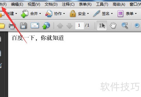 1、 首先,在Adobe Acrobat 9 Pro中点击文件菜单。