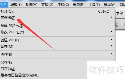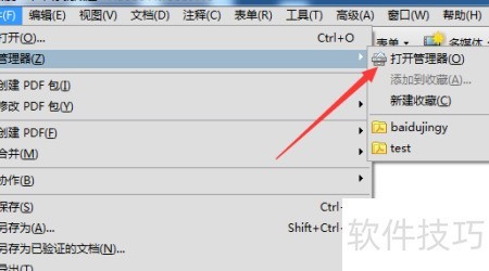 2、 点击文件菜单后,从下拉选项中选择管理器即可。