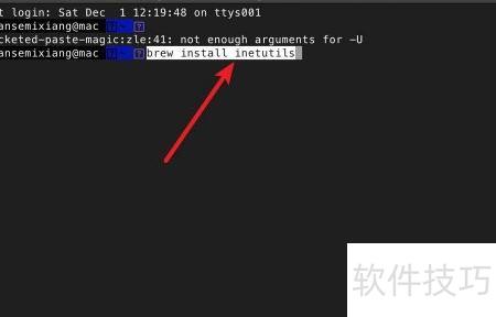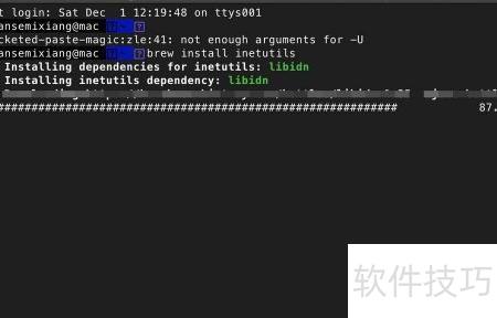 3、 打开终端,输入命令:brew install inetutils,开始安装软件包。