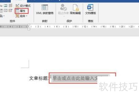 3、 插入文本内容控件后,点击开发工具选项卡中的属性按钮进行设置。