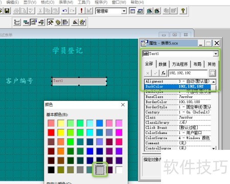 5、 将文本框控件的背景色设置为灰色,位于基本颜色第六行第六列。
