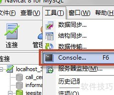 2、 打开Navicat,进入控制台,检查出错表的字符集设置。
