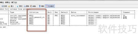 3、 执行命令:show full columns from 表名,查看表的完整列信息。