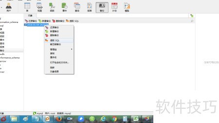 4、 右键点击需提取SQL的备份文件,从菜单中选择提取SQL选项。