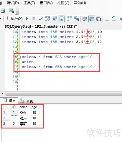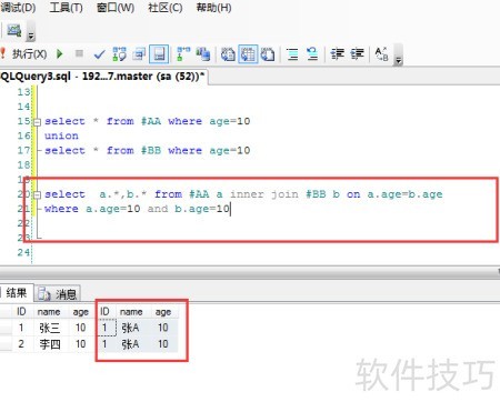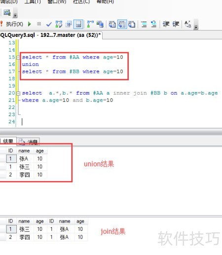 10、 这样操作会生成两个结果集,导致结果不够直观。