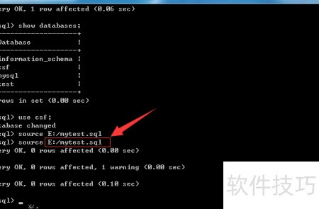 6、 开始导入SQL文件,输入source 文件路径,注意路径需使用斜杠/代替反斜杠,并确保路径正确无误。