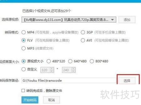 6、 选择转码后文件的保存路径,即指定转换后的视频文件存储位置。