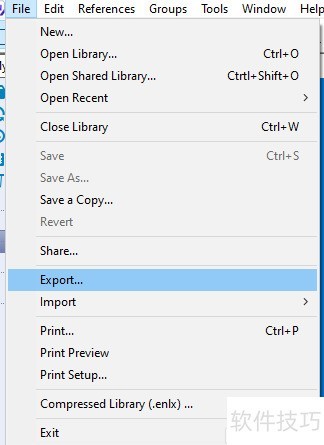 3、 导出参考文献路径:文件→导出,具体操作见下图所示。