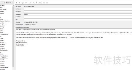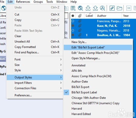 6、 返回EndNote界面,进入输出样式编辑页面,找到BibTeX导出标签模板,准备进行修改,具体操作所示。