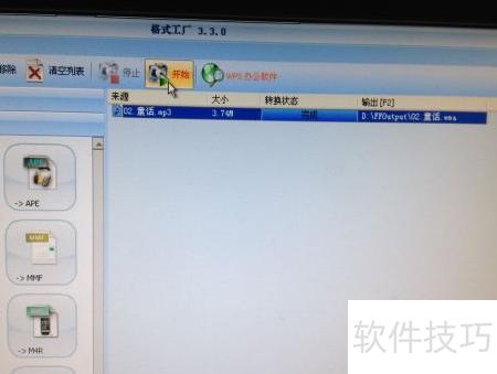 2、 以童话MP3转WMA为例:打开软件,选择音频功能,点击WMA格式进行转换即可完成操作。