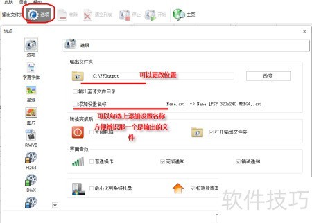 1、 启动格式工厂后,进入选项菜单可更改默认输出路径,建议选择易于查找的文件夹位置,避免转换完成后无法定位文件。还可自定义命名规则或添加标识名称,便于区分和识别转换后的文件,提升使用效率与管理便捷性。