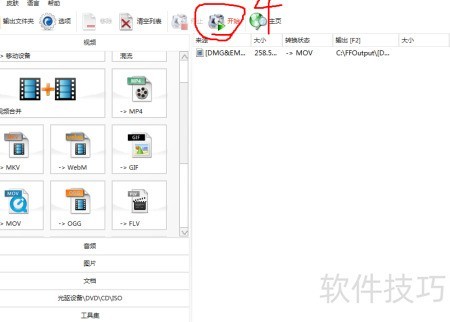 3、 在格式工厂主界面,主要操作集中在视频、音频和图片三大功能区。进入视频转换栏目后,选择目标格式如MOV,随后会弹出设置窗口,点击添加文件并选取需要转换的视频,确认无误后返回主页面,最后点击开始按钮,程序即开始将原视频转换为MOV格式。其他格式转换步骤与此相同,只需选择对应输出格式即可完成操作。