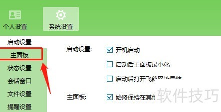 3、 进入系统设置,点击左侧功能栏的主面板选项。