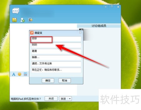 4、 在自定义界面,将常用语修改为所需的快捷回复内容。
