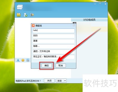2、 在讨论组界面,点击工具栏中的常用快捷语按钮。