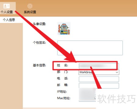 3、 进入个人设置,输入姓名后点击保存按钮完成操作。