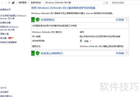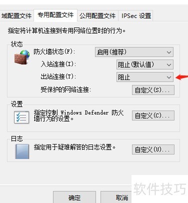 10、 部分软件可能无法联网,只需将专用配置文件的出站设置改为允许即可恢复正常。