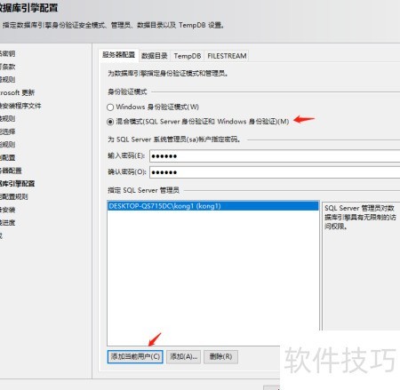 17、 设置SQL服务器密码并添加当前用户账户