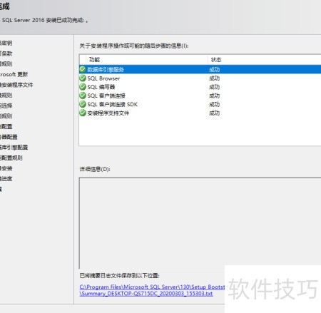 32、 鼠标下滑,依序操作图片,浏览SQL服务器,输入密码确认后返回摘要。
