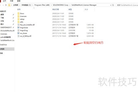 41、 在C:Program Files (x86)SOLIDWORKS CorpSolidNetWork License Manager目录下创建一个名为Licenses的文件夹,然后将许可文件sw_d.lic复制并保存到该文件夹中,确保路径正确无误,以便软件能够正常读取授权信息。