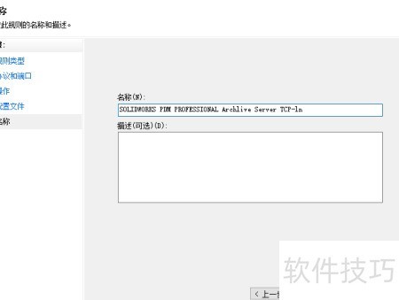 53、 开启TCP协议的3030端口,并将其命名为SOLIDWORKS PDM专业版Archlive服务器TCP通信入口,用于保障相关服务的网络连接与数据传输畅通。