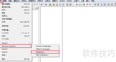2、 启动PowerDesigner 15后,进入物理模型文件界面,通过菜单栏依次点击文件→逆向工程→数据库,系统将自动弹出新建物理数据模型的设置窗口,用于配置数据源并导入现有数据库结构,便于后续的模型分析与设计工作。