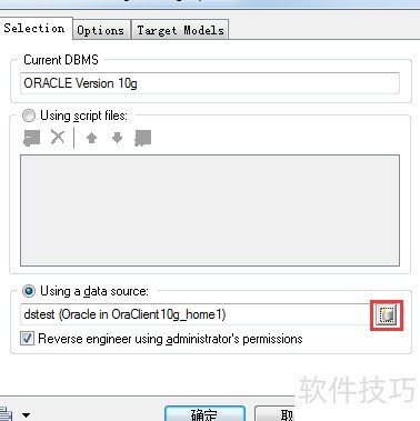 8、 输入用户名和密码后,点击连接按钮。在数据库反向工程选项窗口中确认,随后将弹出导入窗口。
