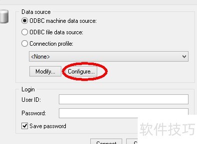 4、 选择使用数据源后,单击连接到数据源图标,将弹出连接到数据源窗口。随后点击配置按钮,会打开配置数据连接窗口,界面如下所示。该窗口用于设置和管理与数据源的连接参数,便于后续的数据读取与处理操作。