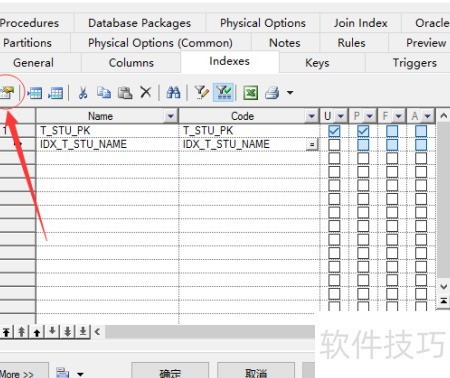 在PowerDesigner的PDM模型中,可通过对象属性设置索引,添加索引名称、选择类型并指定相关列来完成索引创建。