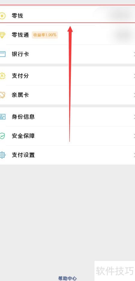 5、 打开钱包,点击零钱选项。