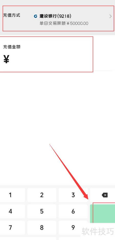 9、 输入充值金额和银行卡信息后,点击确认完成操作。