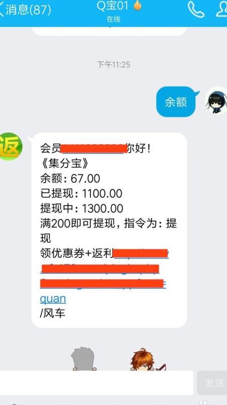 11、 将近期购物记录发送给机器人,即可查询返利金额。