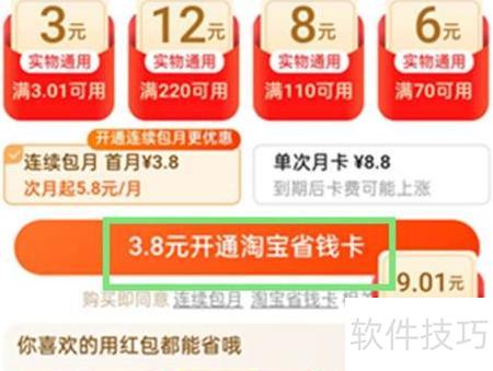 4、 点击开通淘宝省钱卡立即享受优惠。