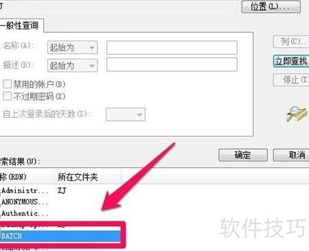 6、 依次点击添加、高级、立即查找,在用户账户列表中搜索BATCH。