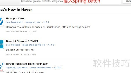 2、 访问工具官网,于输入框内键入spring batch,随后点击搜索按钮进行查询。