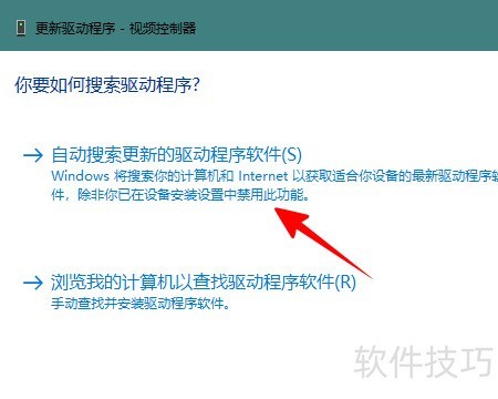 4、 在弹出窗口中选择自动搜索更新的驱动程序软件。