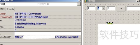 6、 将Service.pas文件添加至工程,并在测试界面按图示添加相应组件。
