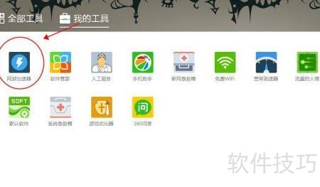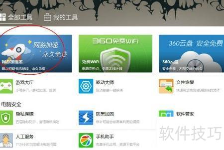 2、 启动360软件,点击右下角更多,进入全部工具,选择并打开360网游加速工具。