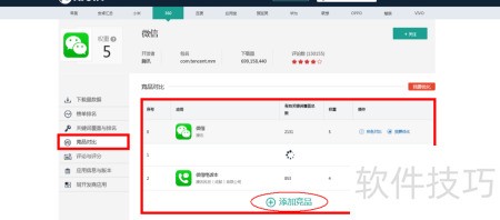 2、 在360市场中搜索,找到正确结果后点击进入微信应用详情页面。