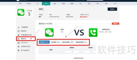 1、 启动ASO114数据分析平台,搜索关键词微信并确认执行查询操作。