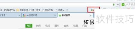 1、 打开360安全浏览器后,右上角可见一个小型图标,此即为扩展插件管理入口。